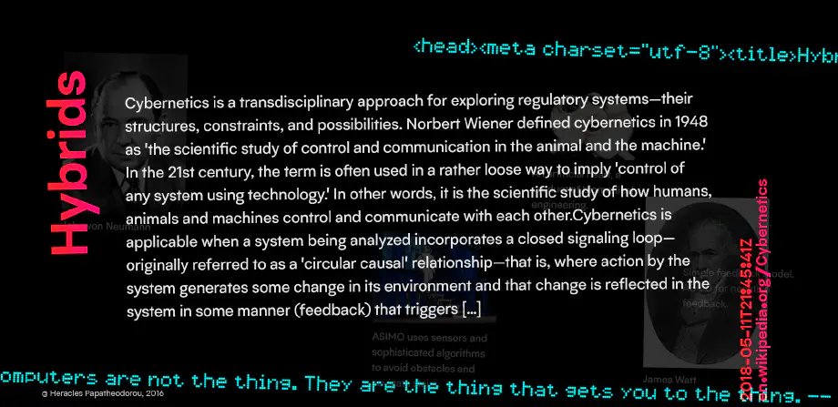 I’m Heracles Papatheodorou, a design technologist, digital maker, project manager, and licensed architect engineer based in Athens, Greece. I work in the fields of cultural production, design, media arts, web development and architecture. My research interests encompass digital literacy, digital interfaces, and artistic practices.